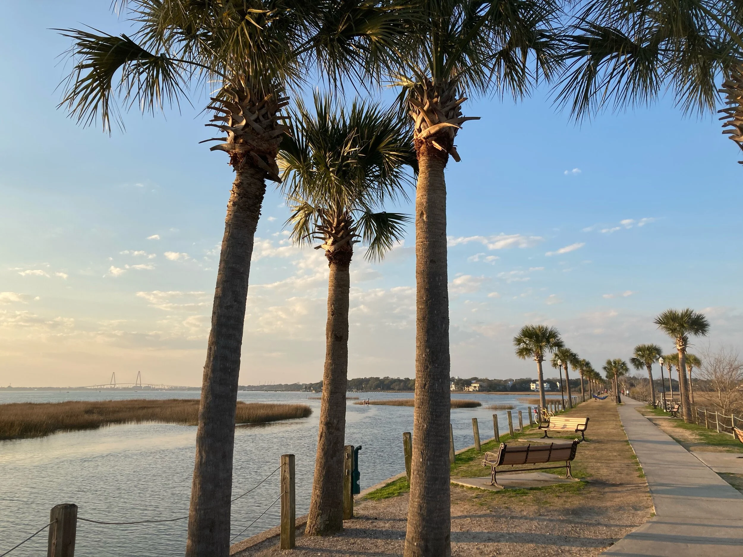A trolley once connected Mount Pleasant to Sullivan’s Island here. Now, it’s a beautiful place to look over the Charleston Harbor to watch the sunset and also a popular fishing/crabbing spot. There are palm trees lining the park-like setting. Bring a blanket or grab a bench to soak in the views. It’s about a 3.5 - 4 mile roundtrip walk from Sullivan’s Nest (depending on how far you go on the ‘bridge’).